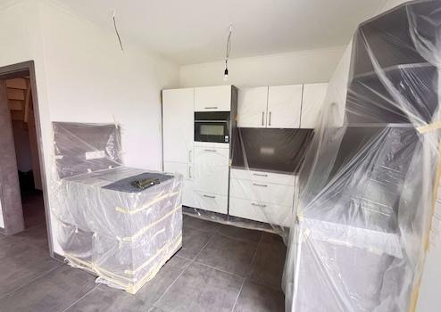 Im Erdgeschoss empfängt Sie ein großzügig geschnittener, offener Wohn-, Ess- und Küchenbereich, der durch bodentiefe Fensterelemente lichtdurchflutet ist und einen direkten Zugang zum Garten bietet. Die moderne, hochwertige Einbauküche ist bereits im Kaufpreis enthalten und fügt sich perfekt in das offene Raumkonzept ein. Hier verbinden sich Kochen, Wohnen und Entspannen auf harmonische Weise.