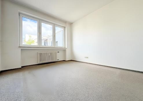 Das großzügige Wohnzimmer ist lichtdurchflutet und bietet vielfältige Einrichtungsmöglichkeiten. Von hier aus gelangen Sie auf den geräumigen Balkon, der einen charmanten Blick auf das lebendige Stadtbild eröffnet ideal, um den Feierabend entspannt ausklingen zu lassen.