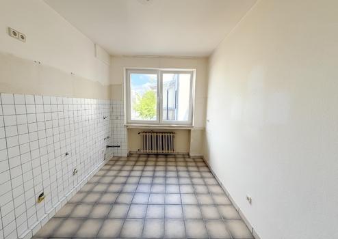 Das ruhig gelegene Schlafzimmer überzeugt durch seine angenehme Größe und eine freundliche Helligkeit. Die separate Küche mit klassischen Wandfliesen bietet genügend Platz für eine individuelle Küchengestaltung.