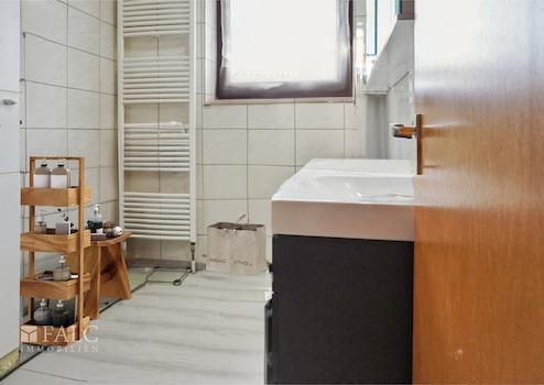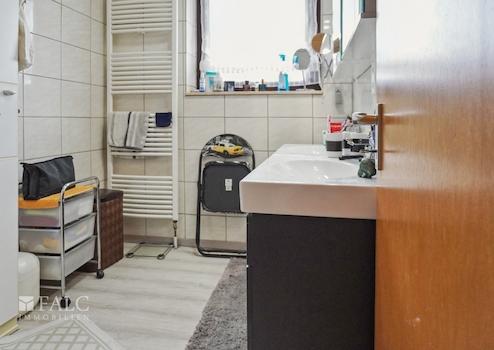 Das Badezimmer wurde vor 3-4 Jahren vollständig erneuert und verfügt nun über moderne Leitungen, zwei Waschbecken und eine barrierefreie Ausstattung.