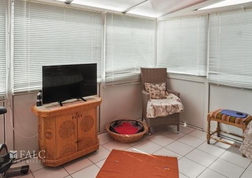 Der Wintergarten, errichtet Mitte der 80er Jahre, bietet zusätzlichen Wohnraum und erlaubt das Genießen der Natur auch bei kühlerem Wetter.