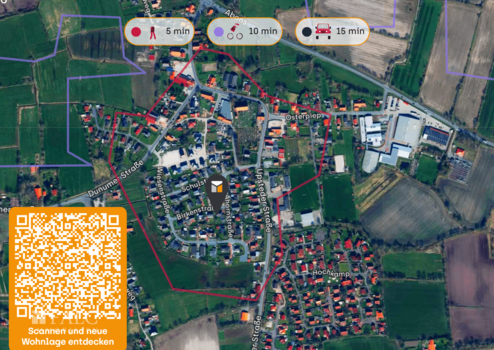 Kindergarten und Grundschule sind innerhalb von einer Minute zu erreichen, was den Standort besonders familienfreundlich macht.