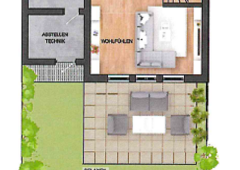 * Terrasse mit Garten