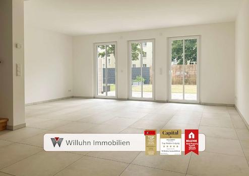 Eine terrassenartige Veranda inklusive Garten rundet den Wohnkomfort des neuen Zuhauses ab.