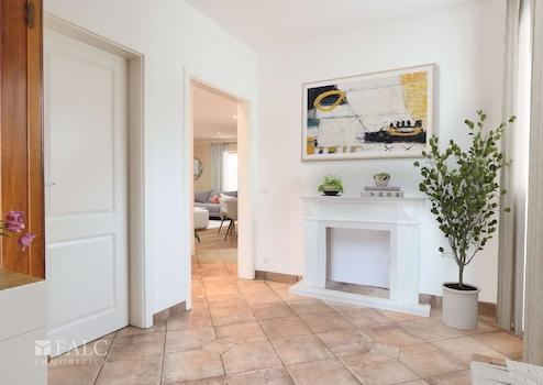 Beim Betreten dieses modernen Hauses aus dem Jahr 2014, das sich auf einer großzügigen Wohnfläche von 172m² erstreckt, werden Sie von einem einladenden Eingangsbereich empfangen. Direkt zur Rechten befindet sich das praktische Gäste-WC, ideal für Besucher.
