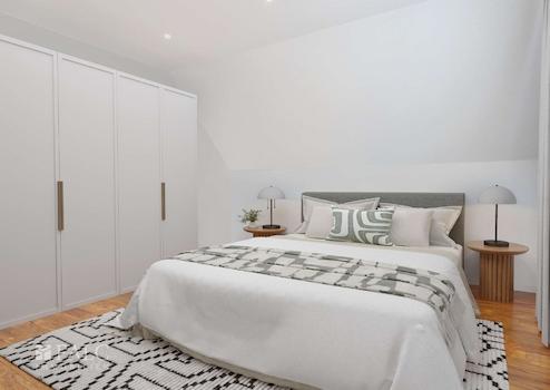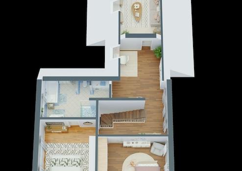 Im Obergeschoss befinden sich die privaten Räume. Das Hauptschlafzimmer bietet ausreichend Platz für einen großen Kleiderschrank und ein gemütliches Bett. Zwei weitere Zimmer können flexibel als Kinderzimmer, Gästezimmer oder Homeoffice genutzt werden. Das Badezimmer auf dieser Etage ist mit modernen Armaturen ausgestattet und bietet eine erholsame Atmosphäre.