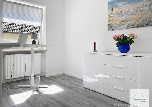 Ein weiterer Pluspunkt: Das separate Arbeitszimmer mit Schlafsofa, höhenverstellbarem Schreibtisch und ergonomischem Stuhl – ideal fürs Arbeiten im Homeoffice oder als Gästezimmer.