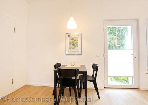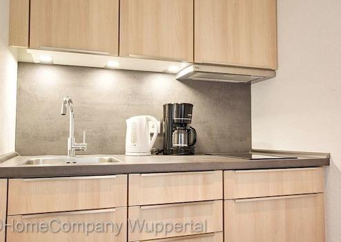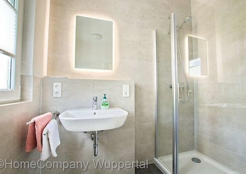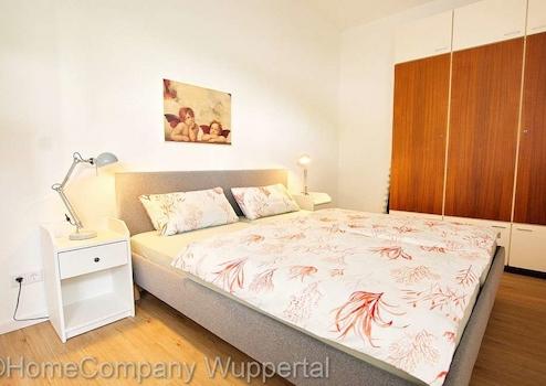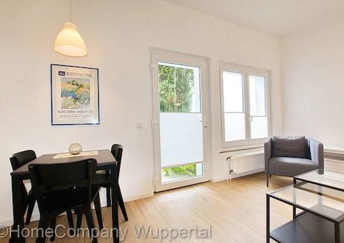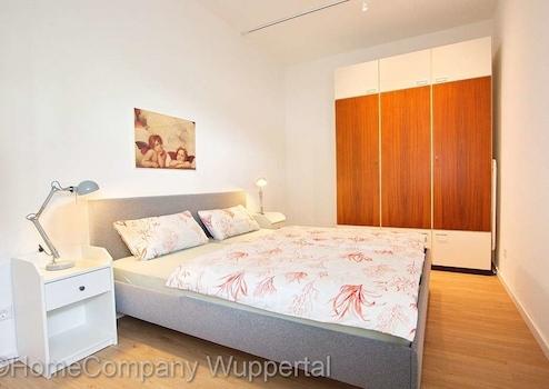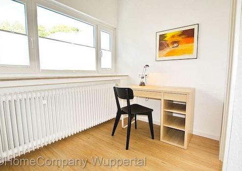 Die neu gestaltete Wohnung ist mit Laminat-Boden in Holzoptik ausgelegt. Das Wohnzimmer mit Blick über Wuppertal ist hell und mit einem Sofa und Beistelltisch, einem Sessel, einem Sideboard und Regal und einem Essplatz für bis zu drei Personen möbliert. Von dem Wohnzimmer aus gelangt man auf den Balkon mit Sitzplatz für zwei Personen und einem wunderschönen Panorama. Die Einbauküche verfügt über einen Kühlschrank, einem Kochfeld mit Dunstesse und allen erforderlichen Kochutensilien. Die Bewohner dürfen außerdem zusätzlich eine großzügige Gemeinschaftsküche mit weiteren Extras im Haus mitnutzen. Das Schlafzimmer ist mit einem großen Doppelbett (180x200m), zwei Nachttischen, einem geräumigen Kleiderschrank und einem Home-Office mit Schreibtisch und Stuhl eingerichtet. Das neue Duschbad ist modern gefliest und mit einer geräumigen Duschkabine, Hänge-WC und Handtuchwärmer ausgestattet. Eine Waschmaschine zur Mitbenutzung steht zur Verfügung., Bettwäsche und Handtücher werden gestellt. Der Mietpreis beträgt € 950,00 für eine Person inklusive aller Energie- und Nebenkosten, der Nutzung des Internet-Zugangs, eines 14tägigen Reinigungsservice und der Nutzung eines PKW-Stellplatzes. Der Mietpreis für 2 Personen beträgt € 1100,00. Die Endreinigung obliegt dem Vermieter, erfolgt nach Aufwand und wird mit € 35,00 pro Stunde abgerechnet.