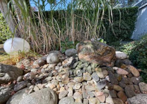 - Aufwendige Gartengestaltung während der gesamten Wohndauer mit integriertem Sprudelstein und Verbindungswegen zu den rückseitigen Eingängen der Garagen