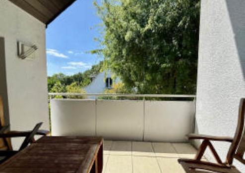 Die Loggia verzückt neben ihrer Gemütlichkeit und dem dort vorhandenen praktischen Abstellbereich mit einem Panoramablick in Richtung Sauerland zur benachbarten Stadt Menden.