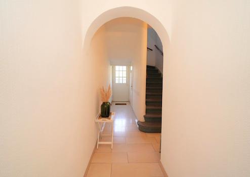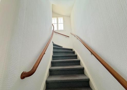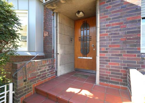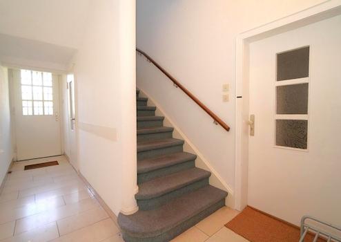 Sie betreten das Haus von der Frontseite und gelangen durch das charakteristische Altbau-Treppenhaus mit Rundbogen in alle drei Wohnungen, den Keller sowie den Spitzboden und ebenfalls geradeaus in den großen Garten.