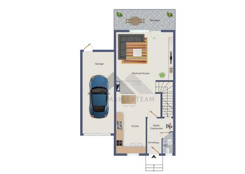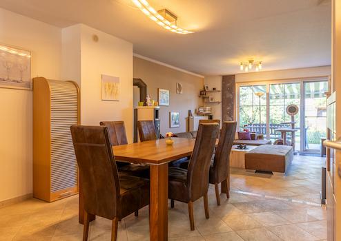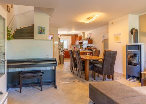 Dieses im Jahr 2004 erbaute Reiheneckhaus vereint solide Bauqualität mit einer durchdachten Architektur über drei Ebenen (Erdgeschoss, Obergeschoss und ausgebautes Dachgeschoss). Der großzügige Wohn- und Essbereich mit offener Küche im Erdgeschoss bildet das Herzstück des Hauses mit direktem Zugang zum privaten Westgarten – ideal, um sonnige Nachmittage und gemütliche Abende im Freien zu genießen.