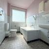 Das Badezimmer ist mittelhoch gefliest, verfügt über eine Badewanne sowie ein Fenster, das für Helligkeit und eine natürliche Belüftung sorgt.