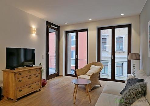 ### Please note the availability date! Bitte das Verfügbarkeitsdatum beachten! ### moderne, möblierte 3-Zimmer-City-Wohnung in einer verkehrsberuhigten Nebenstraße nahe der Semper-Oper und dem Schauspielhaus Dresden; Parkettböden mit Fußbodenheizung, WLAN inklusive, Aufzug im Haus; großes Wohnzimmer mit Esstisch, Couch, Sessel, TV und Ausgang zum Balkon; Schlafzimmer mit Doppelbett und XXL-Kleiderschrank; drittes Zimmer mit 1,40m-Bett und Schreibtisch; moderne Küche in einer Seitennische am Wohnzimmer; Bad mit WC, Wanne, bodentiefer Dusche, Waschmaschine und Trockner; Flurbereich mit Garderobe; die Wohnung kann von außen komplett abgedunkelt werden; Pauschalmiete 2.190,00 Euro (bei 1 Person, wird an max. 3 Personen vermietet); Kaution 3.000,00 Euro; Reinigungsservice inklusve Wäschewechsel möglich; Endreinigung 149,00 Euro; Mindestmietdauer 2 Monate; Pflichtangaben zum Energieausweis: Energieausweis gültig bis: 01.03.2026; Baujahr Gebäude: 2016; Energieausweis: nach Bedarf; Energieverbrauch: 70.7 kWh/(m²a); Energieeffizienzklasse: B; Primärer Energieträger: Fernwärme