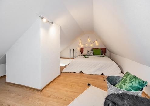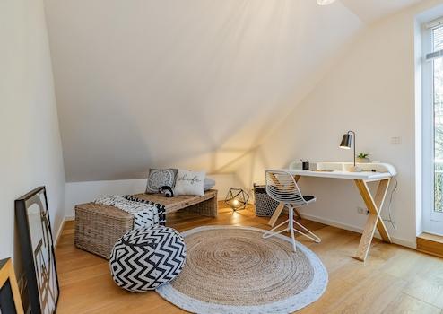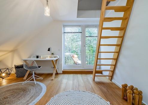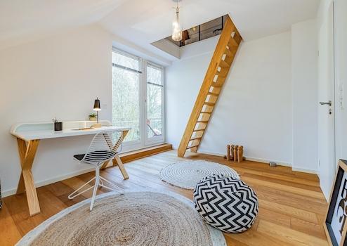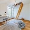 Vom Kinder -/ Arbeitszimmer führt eine Treppe in den ausgebauten Dachgiebel mit einer Schlafmöglichkeit.