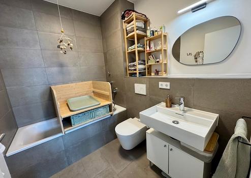 - Hauptbadezimmer mit Badewanne und hochwertigen Armaturen