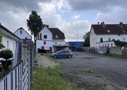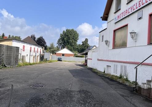Bebauung: ehemaliges Wohn- und Geschäftsgebäude, Werkstatt- / Lagergebäude, überwiegend asphaltierte Freifläche