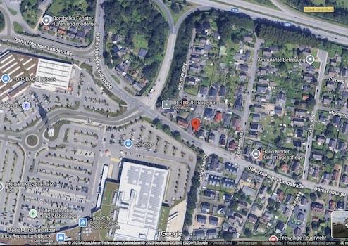 Das Grundstück liegt zwischen der Dänischburger Landstraße und der Tannenstraße in einem gewachsenen Gewerbe- und Wohngebiet. Wichtige Verkehrsanbindungen und Einkaufsmöglichkeiten in direkter Nähe: