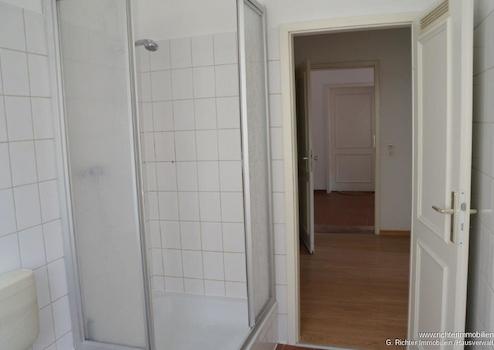 Das Bad ist ausgestattet mit Dusche, WC und Waschbecken. Hier befindet sich auch der Anschluss für Ihre Waschmaschine.