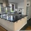 integrierte Küche mit Ceran-Kochfeld, Teppanjaki-Grill, Backofen, im Hochschrank eingebaute Espressomaschine, Kühl- und Gefrierkombination, sowie Spülmaschine.