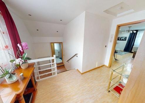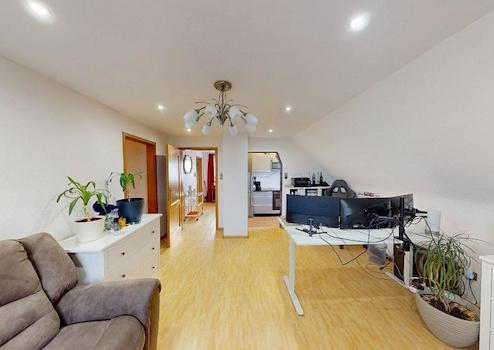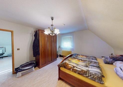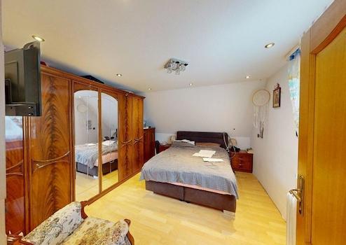 Das Haus überzeugt durch eine funktionale Aufteilung: Im Erdgeschoss erwartet Sie ein großzügiges Wohn- und Esszimmer mit Kaminofen für feste Brennstoffe, welcher ein gemütliches Ambiente bietet sowie eine geräumige Wohnküche. Ein modernes Tageslichtbad mit Dusche sowie der direkte Zugang zum Garten runden diese Ebene ab. Über das Treppenhaus mit zusätzlichem Duschbad gelangen Sie ins Obergeschoss, das drei Zimmer – eines davon ein Durchgangszimmer – sowie eine weitere Küche bietet. Das Dachgeschoss ist über eine Ausziehleiter erreichbar und aktuell als Speicherraum nutzbar.