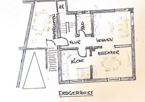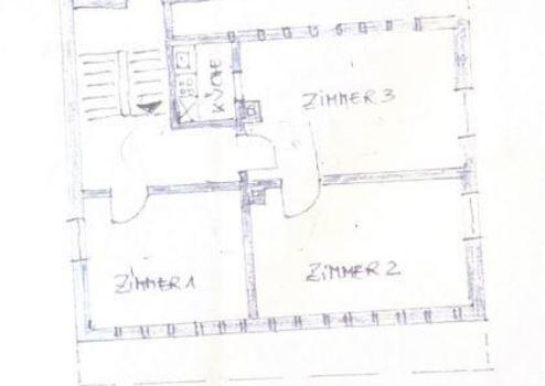 3 Zimmer, davon ein Durchgangszimmer; Küche, Dielenbereich, Treppenhaus