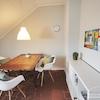 Die Wohnung ist geschmackvoll und gemütlich möbliert. Direkt neben der offenen und vollständig ausgestatteten Küche lädt ein gemütlicher Eßtisch zum Bewirten von Gästen ein.