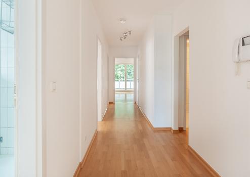 In der gesamten Wohnung befindet sich ein Echtholzparkettfußboden, während in den Bädern sowie in der Küche helle und pflegeleichte Bodenfliesen verlegt sind.