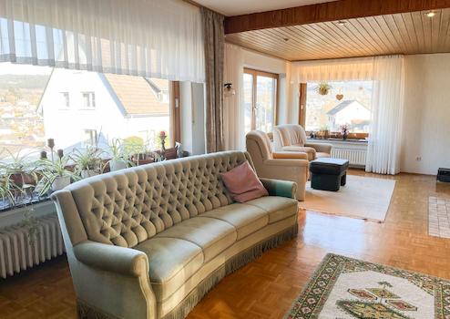 Für gesellige Abende und entspannte Stunden steht Ihnen sowohl eine großzügige Terrasse als auch ein Balkon mit schönem Blick ins Tal zur Verfügung. Ein weiterer Pluspunkt dieser Immobilie ist der vollständig unterkellerte Bereich, der Ihnen zusätzlichen Stauraum bietet oder optional auch als Einliegerwohnung hergerichtet werden kann.
