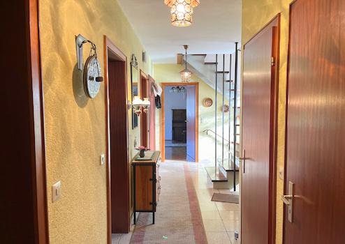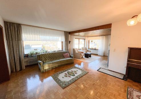 Dieses gepflegte Einfamilienhaus aus dem Jahr 1968 überzeugt mit seinem Charme und seiner praktischen Raumaufteilung auf zwei Etagen. Das großzügige Raumangebot von ca. 200 m² umfasst insgesamt acht Zimmer, darunter vier Schlafzimmer, die ausreichend Platz für die ganze Familie bieten. Das gemütliche Wohnzimmer mit angrenzendem Essbereich und direktem Zugang zur Küche, wird durch einen Pelletofen aufgewertet. Außerdem verfügt das Erdgeschoss über ein modernes Badezimmer, sowie ein geräumiges Schlafzimmer.