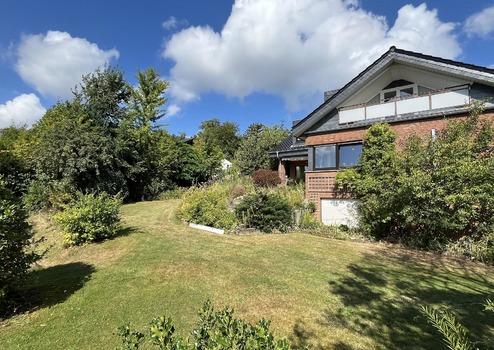 Werfen wir einen Blick nach Draußen: Der schön angelegte Garten mit Hanglage lässt keine Wünsche offen. Ein toller Baum- und Pflanzenbestand lässt das Gärtnerherz höher schlagen. Ein trocken gelegter Teich, die komplette Umfriedung des Gartens, ein Gewächshaus, ein ehemaliger Gemüsebereich, 2 schöne Terrassen und der wunderschöne Weitblick lassen keine Wünsche offen.