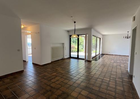 Fangen wir im Erdgeschoss an: Durch den Eingangsflur gelangen Sie in das Gäste-WC, in das Dachgeschoss und in den Wohnbereich. Hier befindet sich auch direkt das 1. Highlight der Immobilie: der ca. 52 m² große und lichtdurchflutete Wohn-/Essbereich mit Zugang zur überdachten Terrasse mit wunderschönem Weitblick und Blick in den Garten - Hier lässt es sich aushalten. Vom Wohn-/Essbereich gelangen Sie ebenfalls in die bereits entkernte Küche, in den Keller und in einem Zwischenflur. Vom Zwischenflur wiederum gelangen Sie in das Ankleidezimmer mit Zugang zum geräumigen Badezimmer mit Dusche und Wanne und in das Schlafzimmer mit Klimaanlage. Ein Büro/Gästezimmer mit Panoramablick rundet das Platzangebot im Erdgeschoss ideal ab.