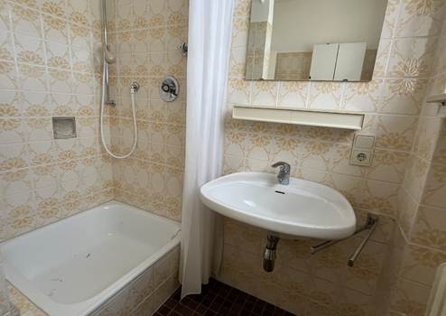 Die 39 m² umfassen ein helles Wohn-/Schlafzimmer, ein Badezimmer mit Dusche und eine vollausgestattete Küche. Die Einliegerwohnung befindet sich noch im Stand 1979 und hat eine stolze Raumhöhe von 2,66 Meter.