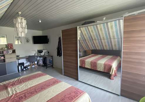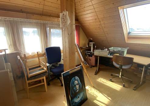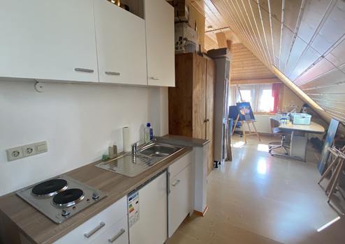 Ein besonderes Highlight dieser Immobilie ist der ausgebaute Spitzboden mit zusätzlichen 25 qm, der auch zur Wohnung gehört. Hier steht Ihnen ein großzügiger Raum mit einer praktischen Küchenzeile sowie ein angrenzendes kleines Badezimmer mit Dusche zur Verfügung. Dieser Bereich eignet sich hervorragend als Gäste- oder Arbeitsbereich und erweitert das Wohnangebot auf attraktive Weise.