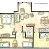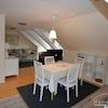 Die ca. 56m² große 3-Zimmerwohnung befindet sich im gesamten Dachgeschoß. Ein Schlafraum verfügt über zwei bequeme Boxspringbetten mit verstellbaren Kopfteil (je 90 x 200), der andere über 2 Einzelbetten (90 x 200). Die Küchenzeile im Wohn-/Eßbereich verfügt über Spüle, Umluft-Herd mit Cerankochfeld, Mikrowelle, Kühlschrank mit Gefrierfach und einen Geschirrspüler.