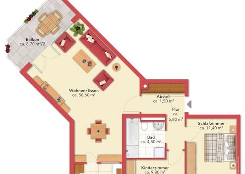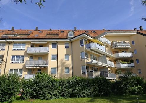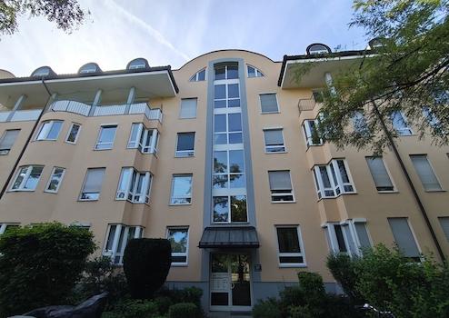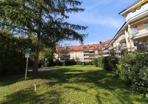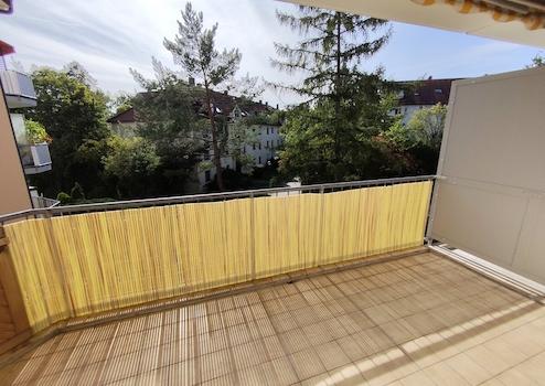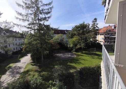 Vom Wohnbereich aus gelangen Sie direkt auf den großen Süd-West-Balkon. Die ruhige Innenhoflage macht den Balkon zu einer wahren Wohlfühloase mit Blick ins Grüne – perfekt zum Entspannen und Genießen.