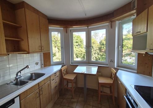 Das Herzstück der Wohnung (2. OG) bildet ein großzügiger Wohn- und Essbereich. Die offene Raumgestaltung verleiht dem gesamten Wohn-Essbereich ein außergewöhnliches Ambiente und sorgt für ein luftiges, lichtdurchflutetes Wohngefühl. Aktuell ist die Wohnung allerdings renovierungsbedürftig.