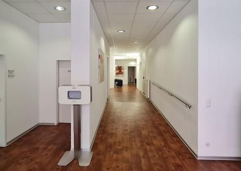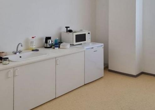 Die klimatisierte Fläche ist sowohl über den Haupt- als auch über einen großen Lieferanteneingang begehbar. Sie ist mit einem pflegeleichten Kunststoffboden ausgestattet. Die EDV- und Stromverkabelung verläuft unter Putz. In der abgehängten Decke sind moderne LED-Leuchten integriert, die eine gleichmäßige Beleuchtung sicherstellen. Im Sozialraum befinden sich Küchenanschlüsse.