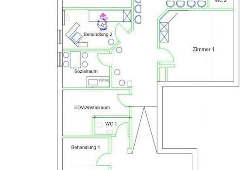 Aufgrund des großen Schaufensters im Wartezimmer sowie der zentralen Lage ist auch eine Nutzung als Verkaufsbüro oder Ausstellungsfläche möglich.