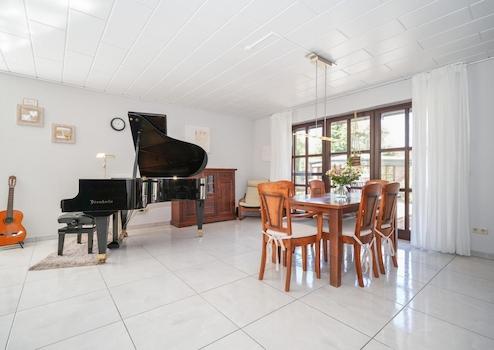 Die Ausstattung lässt keine Wünsche offen: Fußbodenheizung in allen Bereichen, elektrische Rollläden, zwei separate Klimaanlagen sowie ein hochwertiges Gartenhaus mit Bad, Schlafmöglichkeit und eigener Fußbodenheizung bieten höchsten Wohnkomfort. Ein weiteres massives Gartenhaus dient als praktischer Stauraum für Gartenutensilien. Die sonnige Terrasse mit Markise lädt zum Entspannen ein.