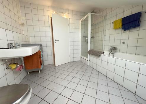 Im Untergeschoss finden sich mehrere Kellerräume, der Heizraum, eine große Garage mit zwei Toren sowie die dritte Wohnung. Diese verfügt über ca. 76 m² Wohnfläche, einen separaten Eingang und bietet Schlafzimmer, Abstellraum, ein hell gefliestes Tageslichtbad, eine Küche mit Einbaumöbeln sowie einen großzügigen, lichtdurchfluteten Wohn-/Essbereich. Von hier aus gelangen Sie auf die Terrasse und in den großen Garten.