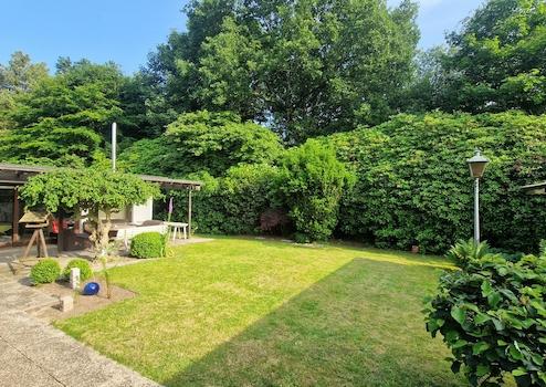 Zugang in den Garten und zu den drei Terrassenbereichen bieten das Wohnzimmer, die Wohnküche sowie der Saunabereich. Dank der Südausrichtung sowie zwei überdachter Terrassenabschnitte lädt das Grundstück ganztägig zu gemütlichen Stunden im eigenen Garten ein.