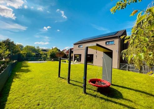 Die energetische Effizienz des Hauses erreicht die Klasse 40+. Sie müssen sich keine Sorgen mehr machen um weitere Maßnahmen wie Heizungsaustausch oder zusätzliche Dämmungen. Die nachhaltige Energieversorgung wird durch eine Photovoltaik-Anlage mit Batteriespeicher gewährleistet. Der vorbereitete Stellplatz für zwei Autos bietet nicht nur viel Platz, sondern auch die Möglichkeit zur Installation einer E-Auto-Ladestation über die PV-Anlage.