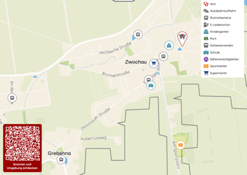 Bushaltestelle "Zwochau, An der Schanze": ca. 500 m entfernt (Linie 196, Fahrzeit zum Hauptbahnhof Leipzig: ca. 45 Minuten)