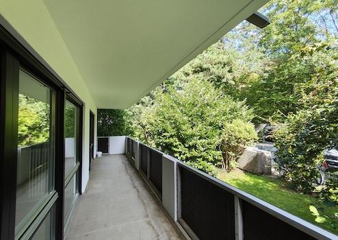 Großzügiger Balkon, Sauna, Laminatböden, bodentiefe Fenster, eigener Eingang.