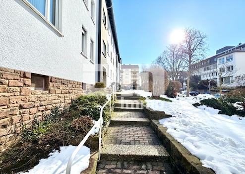 Von hier gelangen Sie über wenige Treppenstufen zum Eingang der Hochparterre-Wohnung.
