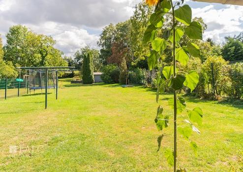 Der weitläufige Garten ist ein Highlight des Hauses. Hier können Kinder spielen, während Sie die Ruhe genießen. Ein Keller bietet zusätzlichen Stauraum und Möglichkeiten zur Lagerung.