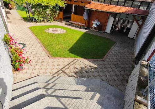 * Doppelgarage und großer, gepflasterter Hof mit viel Stellfläche