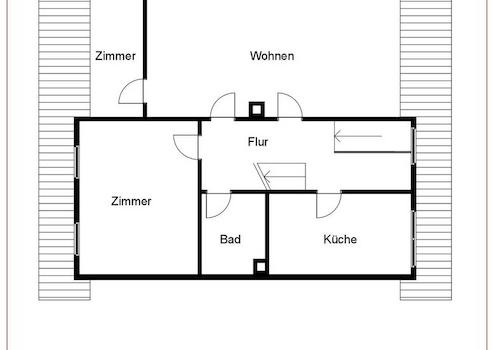 Obergeschoss: Flur, Schlafzimmer, Wohnen/Essen, Küche (ohne Einbauküche), Zimmer, Badezimmer (neu)
