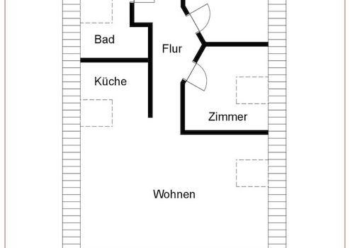 Flur, Bad (Wanne, Waschbecken, WC), Küche, zwei